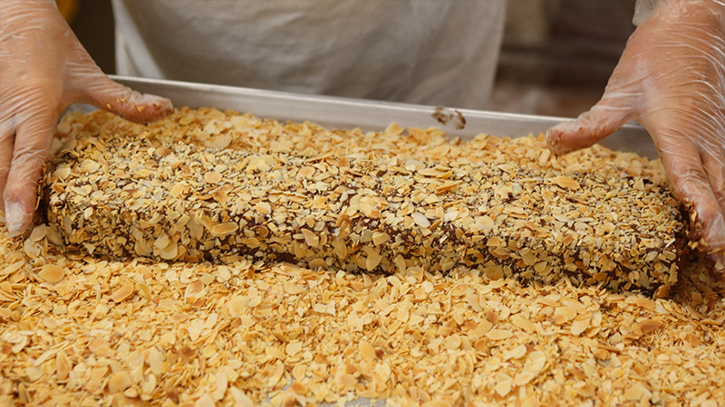良質なチョコレートでコーティングして、香ばしく焼き上げたスライスアーモンドをまといます。
